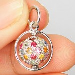 SPD 011 จี้เงิน ชุบทองคำขาว พลอยแฟนซี แซฟไฟร์ รูปลูกโลก หมุนได้