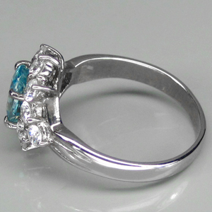 แหวนเงินชุบทองคำขาว พลอยเพทายฟ้า ล้อมเพชรสวิส