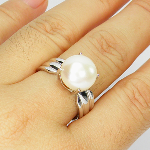 SR 041 แหวนเงินชุบทองคำขาว ไข่มุกแท้